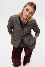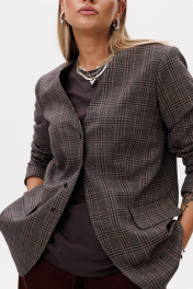 Жакет прямого силуэты на подкладке. По переду прорезные карманы с клапаном. Застежка на кнопках. Рукав втачной.