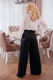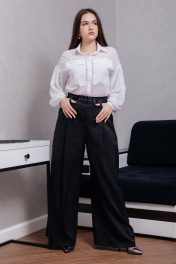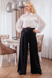 Блузка женская свободного кроя на пуговицах,рукав приспущенный с декоративными складками. На рукаве манжет,застегивается на пуговку. На груди два кармана , по бокам блузки разрезы.