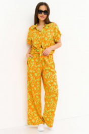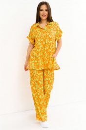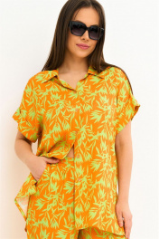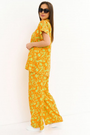 Комплект блуза и брюки яркий штапель пижамного стиля летний Магия моды 2271 оранжевый_салатовый