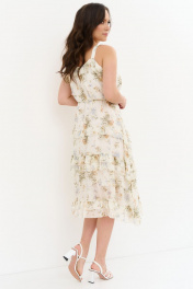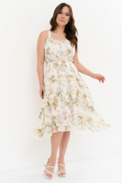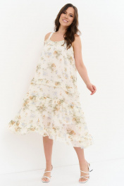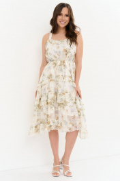 Шифоновый сарафан с приталенным поясом и длинными бретелями Магия моды 2274 молочный_цветы