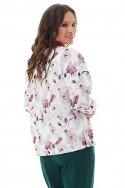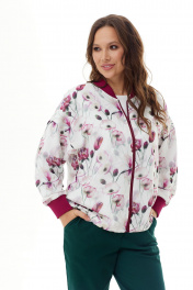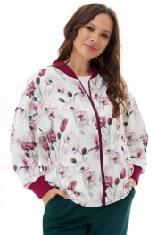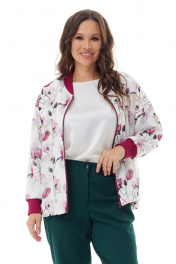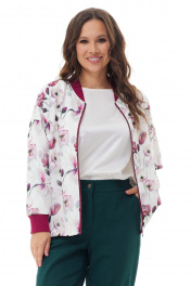 Бомбер свободного кроя из трикотажа и шифона Магия моды 2301 белый-бордо_цветы