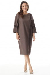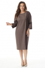 Коричневое платье свободного силуэта с разрезом и тесьмой Магия моды 2329 коричневый.