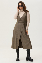 Стильный и элегантный комплект из водолазки и сарафана. Водолазка выполнена из мягкого и нежного фактурного трикотажного полотна "лапша". Сарафан полуприлегающего силуэта с эффектом запаха. Выполнен из мягкой костюмной ткани. Застежка по спинке на потайную молнию. Дополнен съемным поясом, выполненным из основной ткани. Длина водолазки от плечевого шва 63 см. Длина рукава 59см. Длина сарафана от плечевого шва 122см.