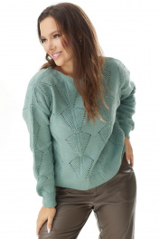 Джемпер фактурной вязки свободный стиль демисезон Магия моды 2346 шалфей