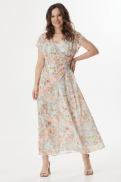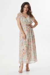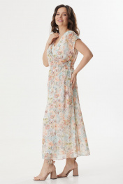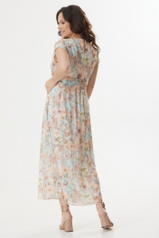 Бежевое и мультиколор платье из шифона с цветочным принтом Магия моды 2430 цветы_акварель