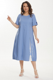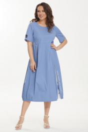 Платье А-силуэта из хлопка с карманами и длинным рукавом Магия моды 2445 голубой