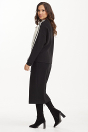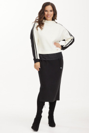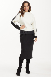 Комфортный трикотажный костюм из джемпера и юбки с разрезом Магия моды 2496 молоко+ черный