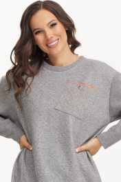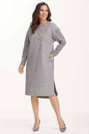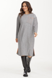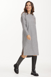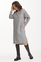Стильное трикотажное платье свободного прямого кроя с боковыми разрезами. Выполнено из мягкого трикотажного полотна с эффектом стежки. Рукав втачной, слегка спущен. Платье дополнено удобными карманами в боковых швах. По среднему шву спинки расположен разрез. Длина платья от плечевого шва 106см. Длина рукава 60см.