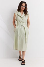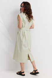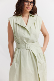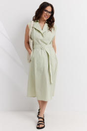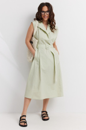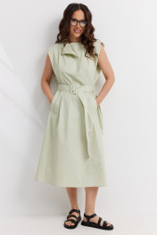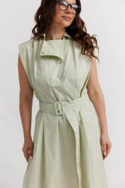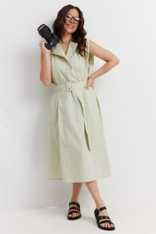 Стильное и комфортное платье из хлопковой ткани. Платье свободного силуэта с оригинальными декоративными защипами для придания формы и силуэта. Приталено за счет съемного пояса, выполненного из основной ткани. Горловина обработана отложным воротником. Воротник можно укладывать разными способами. Платье дополнено удобными карманами. Длина платья от плечевого шва 120 см.