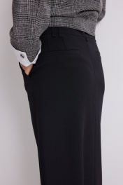 Стильный комплект из жакета и брюк. Жакет прямого кроя, на подкладке, с центральной застежкой на красивые пришивные пуговицы. Рукав втачной, дополнен съемными белыми манжетами. Выполнен жакет из красивой костюмной ткани. Юбка миди прямого кроя, на подкладке, с удобным разрезом спереди. Дополнена удобными боковыми и накладными задними карманами. Юбка с притачным поясом со шлевками для ремня, с застежкой по спинке на потайную молнию и пуговицу. Длина жакета от плечевого шва 60см. Длина рукава 60см. Длина юбки 83см.