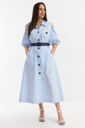 Легкое и воздушное платье из натуральной хлопковой ткани средней плотности с легким эффектом жатки, которая не просвечивает и прекрасно держит форму. Платье А-образного силуэта с центральной застежкой на пришивные пуговицы. Дополнено съемным ремнем с пряжкой. Горловина обработана отложным воротником. Объемный рукав присборен на эластичную тесьму. Дополнен красивыми вырезами. Удобные карманы расположены в боковых швах. Длина платья от плечевого шва125см. Длина рукава 36см.