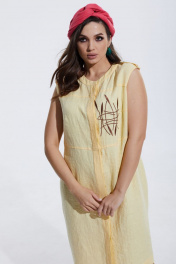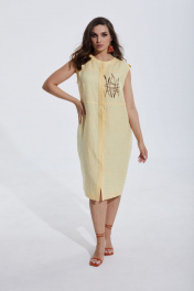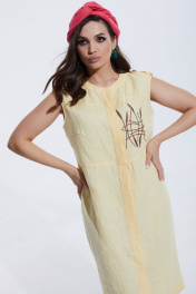 Платье приталенное с вышивкой и кокеткой из льна MALI 422-029 желтый