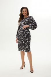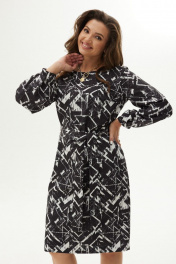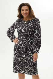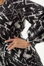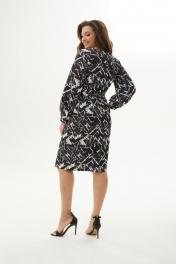 Черное платье прямого силуэта с шлицей и поясом MALI 423-048 черно-белый