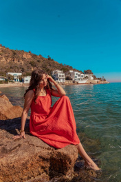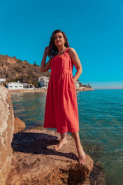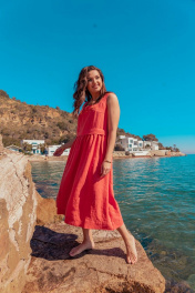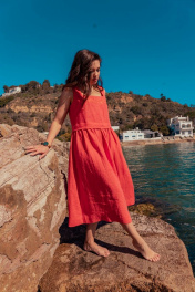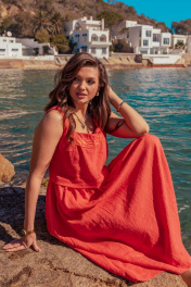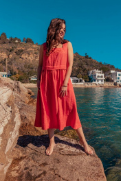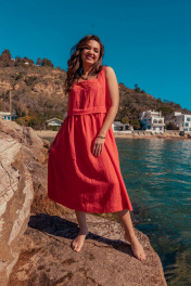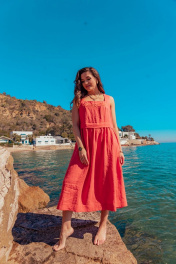 Платье без рукавов с вышивкой и расширенной юбкой летняя MALI 424-032 коралл