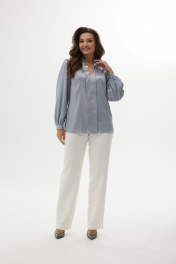 Блуза со сборками из текстиля с воротником-стойкой MALI 623-047 серебро