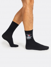 Мужские носки с теплой махровой стопой и рисунком — это отличная возможность внести разнообразие и поднять настроение. Модель выполнена из гребенного хлопка — пряжи высочайшего качества, мягкой, тонкой, но прочной. Натуральные волокна отлично пропускают воздух, позволяя коже дышать, впитывают влагу и дарят ощущение комфорта в течение всего дня. Благодаря небольшому количеству эластана в составе, они хорошо облегают стопу и сохраняют форму даже после множества стирок. Мягкая эластичная резинка надежно удерживает носки на ноге, но не давит. Пятка и мысок дополнительно усилены, что гарантирует защиту от протирания и повышенную износостойкость. Рекомендуем!