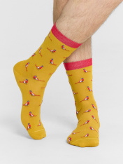 рис.2939 Мужской носок классический, высокий с рисунком в виде мелких попугаев и цветным бортиком.