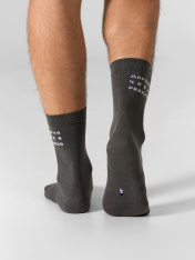 Высокие мужские носки с надписью "Доминируй...". Модель выполнена из гребенного хлопка. Мягкость, тонкость и прочность пряжи обеспечивают комфорт в течение всего дня. Натуральные волокна пропускают воздух и впитывают влагу, позволяя коже дышать. Добавление небольшого количества эластана гарантирует хорошее облегание стопы и сохранение формы изделия даже после множества стирок. Мягкая эластичная резинка надежно удерживает носки на ноге, не создавая дискомфорта. А усиленные пятка и мысок увеличивают защиту от протирания и повышают износостойкость. Рекомендуем!