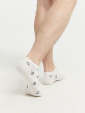 Короткие носки мужские с рисунком в виде уток — отличная возможность внести разнообразие и поднять настроение в обычный день и праздники. Изготовлены из гребенного хлопка - пряжи высочайшего качества, мягкой, тонкой, но прочной. Натуральные волокна отлично пропускают воздух, позволяя коже дышать, и впитывают влагу, дарят ощущение комфорта в течение всего дня. Благодаря небольшому количеству эластана в составе, носки хорошо облегают стопу и сохраняют форму даже после множества стирок. Мягкая эластичная резинка надежно удерживает носки на ноге, но не давит. Пятка и мысок дополнительно усилены, что гарантирует защиту от протирания и повышенную износостойкость — мужские носки с принтом прослужат долго. Лучший выбор на каждый день. Рекомендуем!