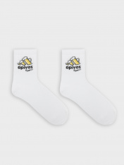 Рис.3106. Мужские носки, средней длины с резинкой на поголенке, рисунком и надписью "Apivas будет?".
