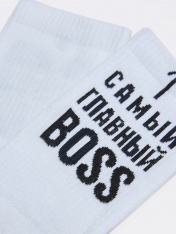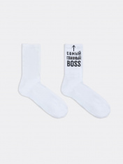 рис.1873 Мужской носок классический высокий с плотным бортом и рисунком в виде надписи.
