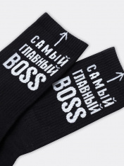 рис.1873 Мужской носок классический высокий с плотным бортом и рисунком в виде надписи.