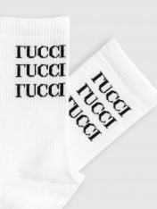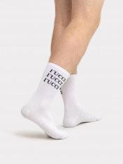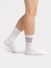 Высокие носки мужские с плотным бортом и рисунком в виде надписи "ГUCCI" — отличная возможность внести разнообразие и поднять настроение в праздники. Изготовлены из гребенного хлопка — пряжи высочайшего качества, мягкой, тонкой, но прочной. Натуральные волокна отлично пропускают воздух, позволяя коже дышать, и впитывают влагу, дарят ощущение комфорта в течение всего дня. Благодаря небольшому количеству эластана в составе, длинные носки хорошо облегают стопу и сохраняют форму даже после множества стирок. Мягкая эластичная резинка надежно удерживает носки на ноге, но не давит. Пятка и мысок дополнительно усилены, что гарантирует защиту от протирания и повышенную износостойкость — мужские носки с принтом прослужат долго. Лучший выбор на каждый день. Рекомендуем!
