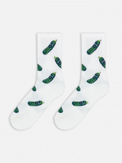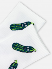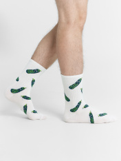 Высокие носки мужские с плотным бортом и рисунком в виде огурца — отличная возможность внести разнообразие в свой стиль и поднять настроение. Изготовлены из гребенного хлопка — пряжи высочайшего качества, мягкой, тонкой, но прочной. Натуральные волокна отлично пропускают воздух, позволяя коже дышать, и впитывают влагу, дарят ощущение комфорта в течение всего дня. Благодаря небольшому количеству эластана в составе, длинные носки хорошо облегают стопу и сохраняют форму даже после множества стирок. Мягкая эластичная резинка надежно удерживает носки на ноге, но не давит. Пятка и мысок дополнительно усилены, что гарантирует защиту от протирания и повышенную износостойкость — мужские носки с принтом прослужат долго. Лучший выбор на каждый день. Рекомендуем!