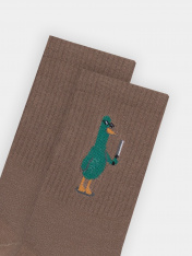 Носки мужские классические высокие с плотным бортом и рисунком в виде гуся - отличная возможность внести разнообразие и поднять настроение в праздники и в обычный будний день. Длинные мужские носки с принтом изготовлены из гребенного хлопка - пряжи высочайшего качества, мягкой, тонкой, но прочной. Натуральные волокна отлично пропускают воздух, позволяя коже дышать, и впитывают влагу, дарят ощущение комфорта в течение всего дня. Благодаря небольшому количеству эластана в составе, носки хорошо облегают стопу и сохраняют форму даже после множества стирок. Мягкая эластичная резинка надежно удерживает носки на ноге, но не давит. Пятка и мысок дополнительно усилены, что гарантирует защиту от протирания и повышенную износостойкость - мужские носки с принтом прослужат долго. Рекомендуем!