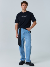Мужская футболка свободного силуэта из натурального хлопка сочетает комфорт и стиль, становясь отличным вариантом для повседневного гардероба. Круглая горловина плотно прилегает к шее, создавая аккуратный и классический внешний вид, а спущенная линия плеча придает расслабленный современный акцент. Длина рукава чуть выше локтя делает модель удобной и универсальной, позволяя легко комбинировать ее с различными предметами одежды. Высококачественный натуральный хлопок обеспечивает мягкость, воздухопроницаемость и комфорт при носке в любое время года. Футболка идеально сочетается с джинсами, брюками, спортивными элементами гардероба и подходит для разных стилей. В линейке представлена широкая размерная сетка, базовые цвета, а также варианты с принтами и декоративными элементами, позволяя подобрать модель, соответствующую индивидуальному стилю.