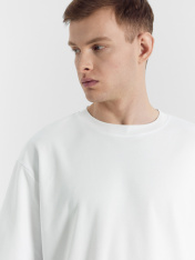 Мужская футболка из трикотажного интерлока – выбор для тех, кто ценит сочетание стиля и комфорта в повседневной одежде. Материал отличается мягкостью и приятной текстурой, обеспечивая комфорт при носке в течение всего дня. Свободный крой и круглый вырез горловины создают расслабленный и современный образ, а слегка спущенная линия плеча добавляет модели непринуждённости. Короткие рукава делают футболку практичной и универсальной, подходящей для разных случаев – от прогулок до отдыха. Этот вариант станет отличным дополнением мужского гардероба благодаря качественным материалам и стильному дизайну._x000D_ .