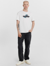 Стильная мужская футболка станет идеальным дополнением к вашему гардеробу для создания расслабленных образов на любой случай. Модель выполнена в прямом свободном крое, что обеспечивает максимальный комфорт и свободу движений. Круглая горловина придает футболке классический вид, который легко сочетается с различными стилями одежды. Короткие рукава и слегка спущенная линия плеча добавляют изделию современный и непринужденный вид. Изготовленная из высококачественной хлопковой кулирки, футболка обладает отличными воздухопроницаемыми и гипоаллергенными свойствами, что делает ее идеальным выбором для любого сезона. Независимо от того, собираетесь ли вы на прогулку, встречу с друзьями или просто на отдых, эта футболка всегда будет выглядеть стильно.