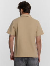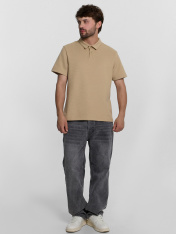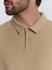 Джемпер поло из трикотажного полотна селаник. Джемпер прямого силуэта, длиной до середины бёдер.Перед и спинка цельнокроенные. По переду обработана застежка «поло» на 2 петли и пуговицы (d=10мм). Воротник отложной. Верхняя планка цельнокроенная. Рукава втачные, короткие. Низ рукавов обработан швом вподгибку. Низ джемпера обработан швом в подгибку на 2-х игольной плоскошовной машине.
