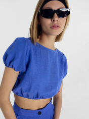 Стильный женский топ выполнен из премиального льна и вискозы, что обеспечивает непревзойденное качество и комфорт. Укороченный дизайн подчеркивает фигуру. Горловина лодочкой придает женственный и изящный вид, а короткие рукава-фонарики добавляют оригинальный и стильный акцент. Этот топ — идеальное сочетание моды и функциональности, которое станет незаменимым элементом вашего гардероба. Широкий размерный ряд. Дополнить можно шортами из этой же коллекции. Рекомендуем!