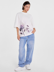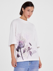 Добавьте нотку индивидуальности в свои образы со стильной женской футболкой с принтом. Эта модель свободного силуэта с круглой горловиной и короткими рукавами со спущенной линией плеча подарит вам непревзойденный комфорт и свободу движений. Изделие выполнено из высококачественной хлопковой кулирки, что обеспечивает мягкость и приятные ощущения на коже, а также отличную воздухопроницаемость. Такая футболка станет идеальным дополнением к вашему гардеробу, разнообразив его и подчеркивая вашу уникальность.