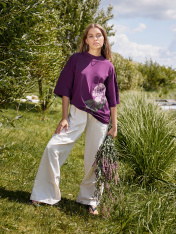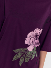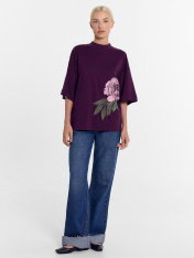 Женская футболка из новой лимитированной коллекции "Дивный сад". Модель свободного силуэта, с углубленной проймой и рукавами выше локтя. Изготовленная из высококачественного хлопка, она обеспечит максимальный комфорт на протяжении всего дня. Натуральные материалы позволяют коже дышать, создавая ощущение свежести и прохлады, даже в самую жаркую погоду. Оверсайз силуэт дарит непревзойденную свободу движений. Изделие украшено принтом в виде большого красочного цветка. Отличный подарок для себя и близких!