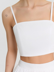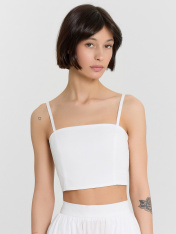 Женский топ прилегающего силуэта на тонких регулируемых бретелях — это изящная и универсальная модель, которая подчеркнет фигуру и обеспечит комфорт в течение всего дня. Благодаря хлопковому материалу изделие приятно к телу, дышит и подходит даже для чувствительной кожи. Подкладка делает посадку более плотной и аккуратной, а сборка на эластичную тесьму по спинке обеспечивает мягкую фиксацию и адаптацию к индивидуальным особенностям фигуры. Регулируемые бретели позволяют настроить длину для идеальной посадки, а лаконичный дизайн делает топ отличной базой для множества образов — от повседневных до вечерних._x000D_