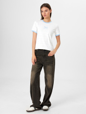 Женская укороченная футболка прилегающего силуэта — это стильная и универсальная модель, которая подчеркивает фигуру и отлично вписывается в повседневный гардероб. Благодаря добавлению эластичных волокон к хлопковой основе, изделие сохраняет форму, мягко облегает тело и обеспечивает комфорт при движении. Круглая горловина с обтачкой из основного полотна создаёт аккуратный и лаконичный образ, а короткие рукава с манжетами добавляют спортивной динамики и подчеркивают актуальность модели. Укороченная длина делает футболку идеальной для сочетания с брюками и юбками с высокой посадкой, создавая стильные и сбалансированные силуэты. Нижний срез аккуратно обработан швом вподгибку, что придает изделию завершенный и опрятный вид. Такая футболка подойдет как для повседневных образов, так и для более выразительных сочетаний с акцентными аксессуарами.