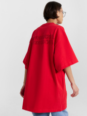Футболка Mark Formelle 112949/24-33319П-0 красная_аура_печать_1сл_аппликация_из_страз_спинка_