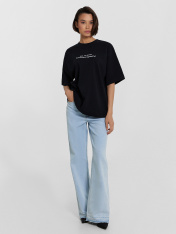 Футболка женская Mark Formelle x Ольга Бузова. Лимитированная коллекция "Мне можно все". Стильный и удобный вариант для любого повседневного гардероба! Изготовленная из мягкой и приятной кулирки, она обеспечивает комфорт и воздухопроницаемость, делая ее идеальной для теплых дней. Круглая горловина обработана обтачкой из рибаны, что добавляет аккуратности и завершенности дизайну. Спущенная линия плеча и короткие рукава создают расслабленный и современный образ, идеально подходящий для повседневных нарядов. Нижние края футболки и рукавов обработаны швом вподгибку, что обеспечивает долговечность и ухоженный вид. Такая футболка станет универсальным выбором, гармонично вписываясь в ваш гардероб и подчеркивая непринужденный стиль. Рекомендуем!