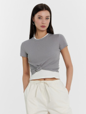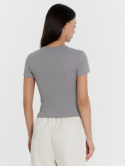 Женская футболка в рубчик — идеальный выбор для тех, кто ценит стиль и комфорт. Модель прилегающего силуэта подчёркивает фигуру, а круглая горловина и короткие рукава обеспечивают классический и удобный крой. Изделие выполнено из эластичной хлопковой рибаны, что придаёт футболке мягкость, отличную воздухопроницаемость и долговечность. Этот материал хорошо сохраняет форму и цвет. Благодаря эластичности, модель удобно облегает тело, не сковывая движений. Такая футболка станет отличным дополнениемвашего гардероба, подходящим как для повседневной носки, так и для создания стильных образов на различные случаи.
