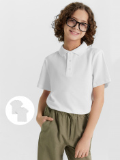 Силуэт прямой. Перед, спинка цельнокроеные. По переду изделия выполнен разрез на застежку на 3 вертикальные петли и пуговицы. В горловину втачен готовый воротник (довяз). Припуск шва втачивания воротника в горловину по спинке окантован бейкой, настроченной по перегибу на спинку между плечевыми швами. Рукава короткие одношовные. Низ изделия и рукавов обработаны швом в подгибку.