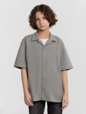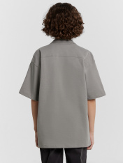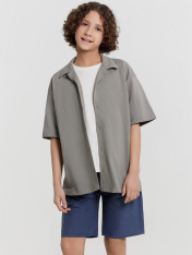 Сорочка верхняя для мальчиков прямого силуэта с воротником. По переду обработана застежка на пуговицы и петли. Диаметр пуговицы 1 см, 4 прокола. Рукава короткие, втачные, слегка спущены. На спине кокетка. Нижние срезы изделия и рукавов обработаны швом в подгибку.