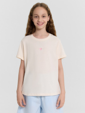 Модная футболка для девочек, выполненная из хлопковой трикотажной кулирки. Силуэт прямой. Перед и спинка без швов и рельефов. Рукава короткие, вырез классический – круглый, не глубокий. Стильная футболка с ярким дизайном!