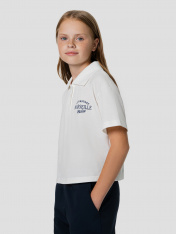 Поло для девочек с надписью "Marseille" — это стильная и комфортная модель, вдохновленная атмосферой французского побережья. Свободный силуэт позволяет двигаться без ограничений, а отложной воротник и застежка на пуговицах придают образу нотки классики. Спущенное плечо и слегка углубленная пройма создают расслабленный, современный силуэт, а короткие рукава идеально подходят для теплой погоды. Изделие выполнено из хлопкового пике — дышащей, приятной к телу ткани с легкой фактурой, что делает этувещь особенно комфортной для активных будней и прогулок.