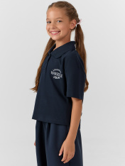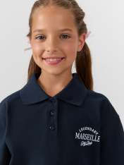 Поло для девочек с надписью "Marseille" — это стильная и комфортная модель, вдохновленная атмосферой французского побережья. Свободный силуэт позволяет двигаться без ограничений, а отложной воротник и застежка на пуговицах придают образу нотки классики. Спущенное плечо и слегка углубленная пройма создают расслабленный, современный силуэт, а короткие рукава идеально подходят для теплой погоды. Изделие выполнено из хлопкового пике — дышащей, приятной к телу ткани с легкой фактурой, что делает этувещь особенно комфортной для активных будней и прогулок.