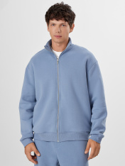 Мужская толстовка прямого силуэта из трикотажного футера с подчесом — практичный и универсальный выбор для прохладных дней. Материал обладает мягкостью и умеренной плотностью, отлично удерживает тепло и приятно ощущается на теле. Округлая горловина с воротником из рибаны аккуратно оформлена и надежно фиксируется, сохраняя форму при носке. Спущенная линия плеча и длинные рукава с рибаной на манжетах обеспечивают комфорт и расслабленный силуэт, подходящий для любого типа фигуры. Центральная застежка на тесьму-молнию позволяет легко надевать и снимать изделие, а также добавляет практичности и динамичного настроения. Пояс из рибаны по низу завершает образ и фиксирует посадку, не давая ткани растягиваться. Толстовка легко комбинируется с джинсами, спортивными брюками или шортами, отлично подходит для города, загородных поездок или активного отдыха.