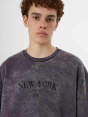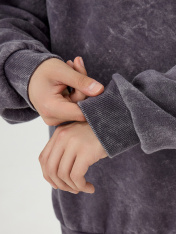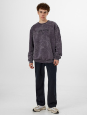 Теплый мужской свитшот из трикотажного футера с нежным подчесом. Силуэт прямой, вырез классический – круглый, не глубокий. Рукава длинные, на манжетах из рибаны. Спущенная линия плеча дарит свободу движений. Пояс, проходящий по нижнему срезу, также сделан из рибаны. Отличный свитшот для городских образов.