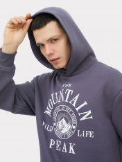 Стильный мужской анорак (худи) прямого силуэта, слегка посаженный на пояс. Выполнен из трикотажного футера с теплым подчесом и принтом в виде надписи "THE MOUNTAIN WILD LIFE PEAK". Горловина круглая, с уютным капюшоном, который спереди идет внахлест. Рукава длинные, на манжетах. Слегка спущенная линия плеча и немного углубленная пройма дарят свободу движений. Широкий размерный и цветовой ряд. Хорошо сядет на любую мужскую фигуру. Дополнить можно низом из линейки базовой одежды. Отличный мужскойанорак для лаконичных городских образов!