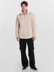 Новинка осенней коллекции — свитшот мужской из трикотажного полотна футер с подчесом. Имеет свободный, прямой крой. Горловина округлой формы с воротником-стойкой. Рукава втачные, длинные. Линия плача слегка спущена. По низу рукавов отрезные манжеты.По переду отрезная кокетка. Центральная застежка на тесьму-молнию. Спереди есть накладной карман-кенгуру. Стильная и невероятно удобная модель для создания комфортных и уютных образов. Подойдет в качестве базовой одежды и тем, кто любит проводить много времени на прогулках с друзьями в зимний период времени. Теплый мужской джемпер согреет вас и не даст замерзнуть. Дополнить можно низом в тон из линейки мужской одежды. Рекомендуем!